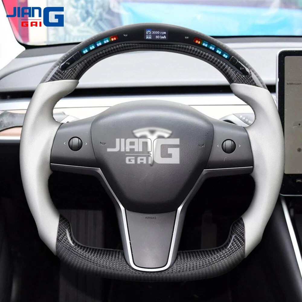 Led Carbon Fiber Smooth Leather Steering Wheel Fit 16 Tesla Model 3 Model Y Ebay
